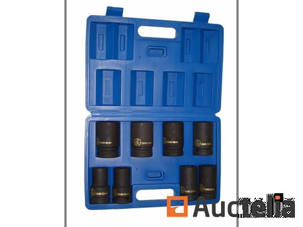 Doppenset, kracht 1″, 8-dlg. CR-M0, 24-41x 88 mm, Phosphated zwartOmschrijving: Doppenset, kracht 1″, 8 dlg. Maten 27-30-32-36-38-41-46-50 mm, voorzien van boring en kogel. Krachtdoppen geschikt voor zwaar werk met luchtcompressor. Materiaal: Chroom-Molybdeen, gefosforiseert. Krachtige ( Impact ) doppenset.