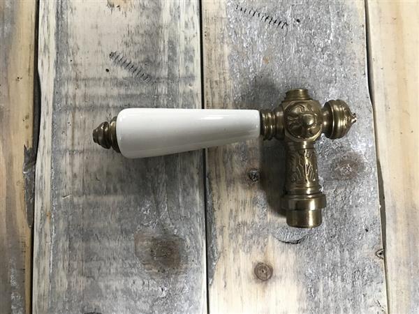 1 Deurklink, gepatineerd messing met wit keramische greep.