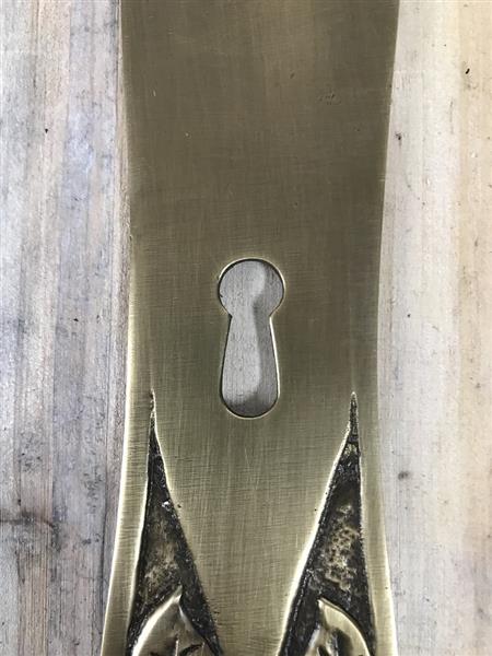 Deurschild geschikt voor kamerdeur sloten BB in gepatineerd messing is navervaardigd aan de hand van een antiek origineeel.