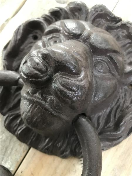 - Deurklopper leeuwenkop met stopper, gietijzer, bruin.