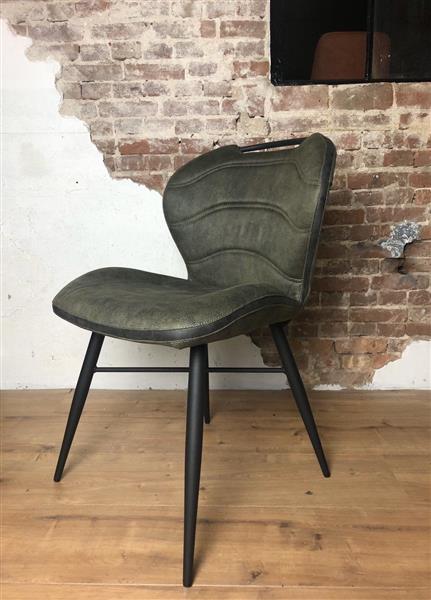 Deze eettafel stoel heeft geen armleuningen. De eettafel stoel uitgevoerd in het olijf is bekleed met een microvezelstof. Om vuil en vlekken te voorkomen adviseren wij om de eettafel stoel te  impregneren . Of maak gebruik van onze vijf-jarige iProteqt service. Om verkleuring te voorkomen adviseren wij om de eettafel stoel niet in direct zonlicht te plaatsen! De eettafel stoel heeft op de kuip een zwart metalen handgreep, zo schuif je de eettafel stoel gemakkelijk af en aan de tafel. Eettafel stoel Tiba kun je met verschillende interieurstijlen combineren, heb je een modern of industrieel interieur, dan zal deze prachtige eettafel stoel niet misstaan! Door de combinatie van de materialen en de kleuren heeft deze eettafel stoel een industriële uitstraling.