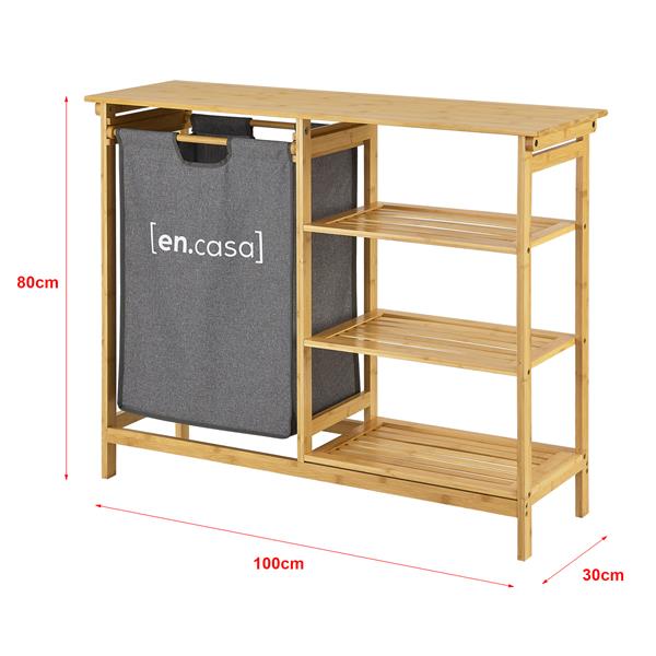 De stijlvolle en decoratieve staand rek heeft 3 planken en een uittrekbare waszak. Het is perfect voor het opbergen van handdoeken, wasmiddelen of andere badkamerbenodigdheden.