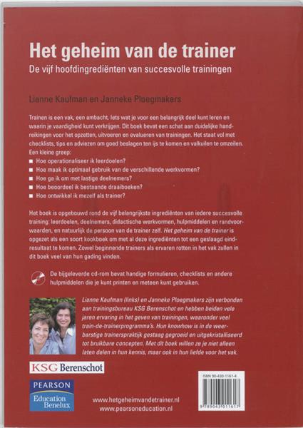 Titel: Het geheim van de trainer Auteur: J. Ploegmakers ISBN: 9789043011617 Conditie: Used Trainen is een vak, een ambacht. Iets wat je voor een belangrijk deel kunt leren en waarin je vaardigheid kunt verkrijgen. Dit boek bevat een schat aan duidelijke handreikingen voor het opzetten, uitvoeren en evalueren van trainingen. Het staat vol met checklists, tips en adviezen om goed beslagen ten ijs te komen en valkuilen te omzeilen. Een kleine greep: ■ Hoe operationaliseer ik leerdoelen? ■ Hoe maak ik optimaal gebruik van de verschillende werkvormen? ■ Hoe ga ik om met lastige deelnemers? ■ Hoe beoordeel ik bestaande draaiboeken? ■ Hoe ontwikkel ik mezelf als trainer? Het boek is opgebouwd rond de vijf belangrijkste ingrediënten van iedere succesvolle training: leerdoelen, deelnemers, didactische werkvormen, hulpmiddelen en randvoorwaarden, en natuurlijk de persoon van de trainer zelf. Het geheim van de trainer is opgezet als een soort kookboek om met al deze ingrediënten tot een geslaagd eindresultaat te komen. Zowel beginnende trainers als ervaren rotten in het vak zullen in dit boek veel van hun gading vinden. De bijgeleverde cd-rom bevat handige formulieren, checklists en andere hulpmiddelen die je kunt printen en meteen kunt gebruiken.