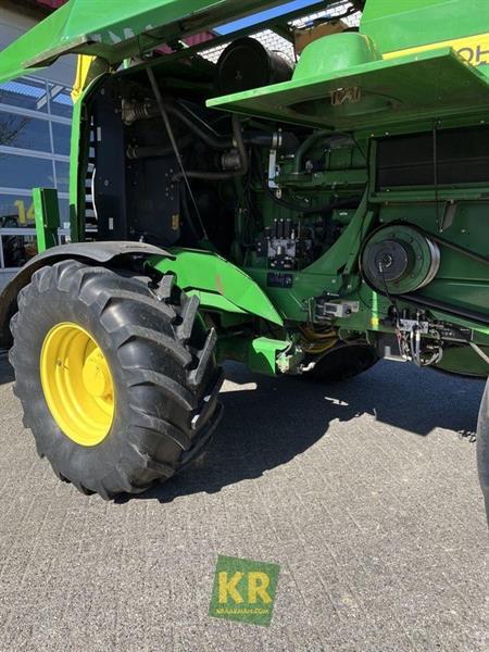 * John Deere 13,5 liter 6 cilinder motor met een vermogen van 490pk * Premium cabine met luchtgeveerde stoel, ruitenwisser voor & op de 2 zijramen, Climat control & radio * Prodrive 40 km transmissie met automatische anti slip regeling en verlaagt motor toerental bij weg transport * 4 wiel aangedreven * Duradrum messenkooi voorzien van 56 messen. 24 & 36 messen configuratie ook mogelijk. * Unieke terugdraaiend messenslijp systeem en automatische afstelling van het vaste mes voor een ultra precieze afstelling en ongeëvenaarde snijkwaliteit. * Ivloc traploze snlij lengte verstelling, instelbaar vanuit de cabine met 1 draai aan de knop, eventueel te automatiseren op bassis van droge stof meeting ( let op Nir sensor is hiervoor noodzakelijk ) * 8 rijige pijp met 3 vrij programmeerbare geheugen instellingen * Premium korrelkneuzer met hoog toerental verschil en elektrisch instelbare tussenruimte vanuit de cabine * Elektrische takel tbv monteren en demonteren van de korrelkneuzer * Kraakman gemodificeerde gras uitrusting * Banden 800/65R32 & 580/70R26 Michelin * Automatische smering * kooiuren maart 2025 3870