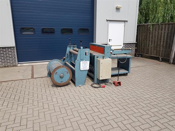 Kader afwikkelmachine 1000x1,5mm lengte ingave en stuks teller. Deze machine kan gebruikt worden voor rollen zink en koper. Eenvoudig te bedienen.