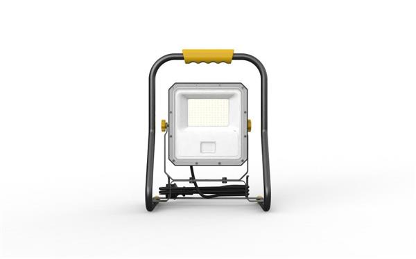 Praktisch in gebruik: de lamp is uitgerust met een vervangbare 3 meter H07RN-F-kabel én een geïntegreerd stopcontact om direct elektrisch gereedschap aan te sluiten. De stabiele, verstelbare beugel zorgt voor flexibele plaatsing en eenvoudige hoekinstelling.
