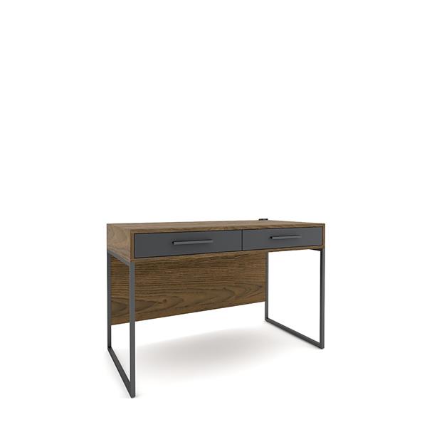 Dit leuke bureau heeft dankzij de combinatie van de kleur walnoot en het metalen frame een stoere, industriële uitstraling. Het bureau is voorzien van een handige USB-aansluiting en twee ruime lades met soft-close-systeem.