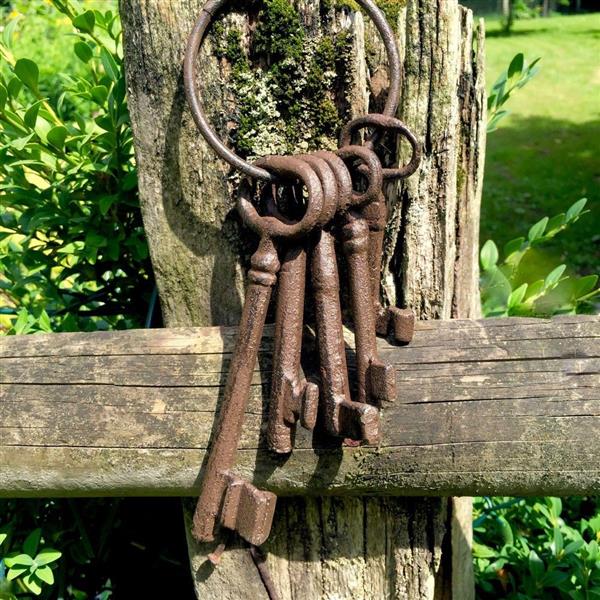 Leveringsomvang: 1 sleutelhanger met 5 sleutels, gietijzer, dkl.-bruin