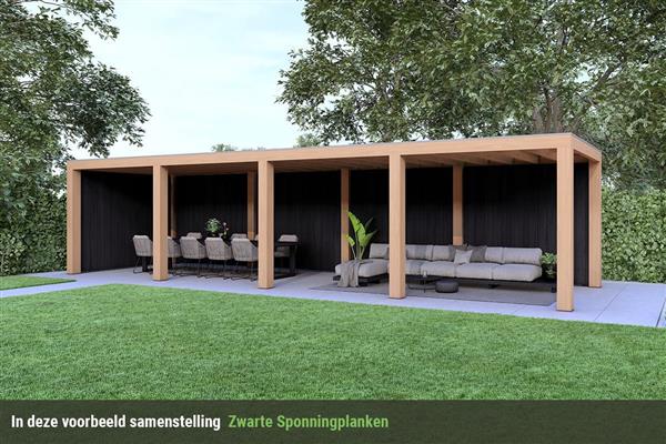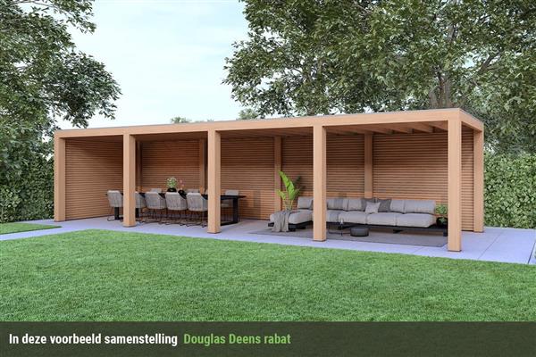 Deze populaire overkapping wordt gemaakt van de hoogste kwaliteit douglas. Het douglas hout is geschaafd en kunstmatig gedroogd en hierdoor erg duurzaam. De strakke vormgeving en de staanders van 19,5 x 19,5 cm geven hem een robuuste uitstraling. De Overkapping Slim Serie 2 wordt standaard met een volledige achterwand en zijwand geleverd. De soort wandplanken kun je hieronder zelf kiezen. Optioneel kun je nog meer wanden toevoegen. Verder wordt er standaard RVS bevestigingsmateriaal en een stadsdoorvoer meegeleverd. Alles wat je optioneel kunt bestellen vind je hieronder.