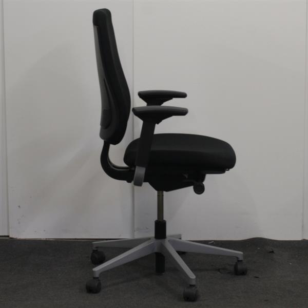 Tweedehands Steelcase bureaustoel. 1D armleuning. Lichtgrijs voetkruis.