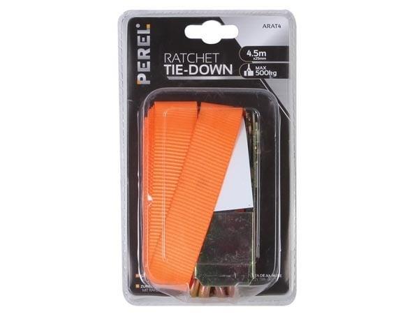De 2-delige PEREL ARAT4 spanband is uitgevoerd met een Oranje LC 500 daN / 500kg ratel. Ideaal om je lading mee vast te zetten. De spanband heeft totale een lengte van 4.5meter en hiermee geschikt voor klein transport of bundelen van materialen. Ideaal met haken, om materiaal van links naar rechts vast te zetten. of bijvoorbeeld over een aanhangwagen.