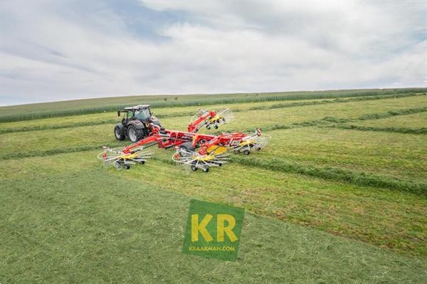 Groothoekaftakas 1 3/8" 6-delig Luchtdruk remmen Banden 710/35 R22,5 5-wielig zwenkbaar chassis met tandemassen met 16 x 6,5-8 banden Mechanische hoogteverstelling Zwaddoek met houders Uitvoering 40 km/h volgens norm (EU) 2013/167 Waarschuwingsbord met verlichting Profiline-comfortbesturing, ISOBUS, zonder terminal POWER CONTROL bedieningseenheid De TOP VT 12540 C is een compact ontworpen zwadhark met vier elementen. Dit betekent een maximale doeltreffendheid en een grote wendbaarheid. Door zijn lage gewicht kan deze zwadhark ook met een gerust hart op hellingen worden gebruikt. 1 Draagarm met lineaire uitbreiding De werkbreedte wordt aangepast met behulp van de lineaire, hydraulische schuifsystemen die in de draagarmen zijn geïntegreerd. 2 Mechanische aandrijving Alle vier de elementen worden mechanisch aangedreven via aftakassen. 3 Cirkelharkontlasting De twee voorste elementen zijn hydraulisch ontlast. Bij de Profiline-comfortbesturing is de terminal uitgerust met een digitale weergave. Bij deze uitvoering past de kracht van de ontlasting zich automatisch aan de werkbreedte aan. De twee achterste elementen worden mechanisch ontlast. De cirkelharkontlasting draagt bij aan een rustige loop van de elementen tijdens de arbeid. Daarnaast wordt de stabiliteit op hellingen aanzienlijk verhoogd. Transport breedte 3 meter Transport hoogte 3.99 meter Aftakas toeren 540 Gewicht 5200 KG Werkbreedte 10-12.5 meter Zwadbreedte 1.2-2.00 meter Diameter element 1.3 meter Tanden per arm 12 voor 13 achter Benodigd vermogen 90PK Groothoekaftakas 1 3/8" 6-delig Luchtdruk remmen Banden 710/35 R22,5 5-wielig zwenkbaar chassis met tandemassen met 16 x 6,5-8 banden Mechanische hoogteverstelling Zwaddoek met houders Uitvoering 40 km/h volgens norm (EU) 2013/167 Waarschuwingsbord met verlichting Profiline-comfortbesturing, ISOBUS, zonder terminal POWER CONTROL bedieningseenheid