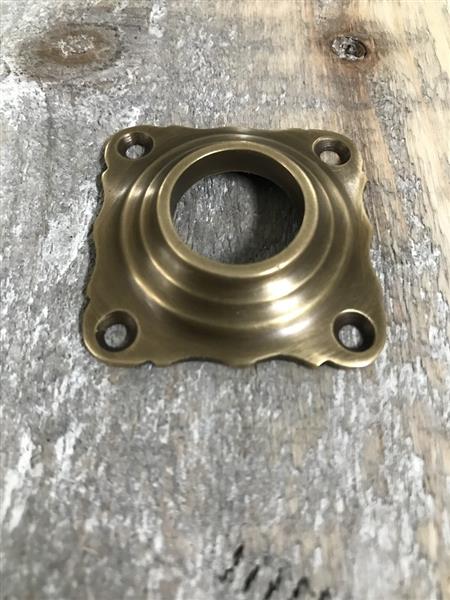 Vierkante rozet, volledig gemaakt van gepatineerd messing.