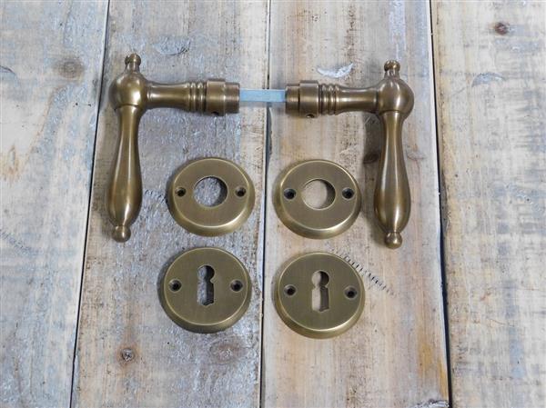 Prachtige set deurbeslag, volledig gepatineerd messing.