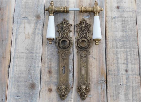 - Set deurbeslag BB 72 - Art Nouveaux - gepatineerd messing - grepen van porselein