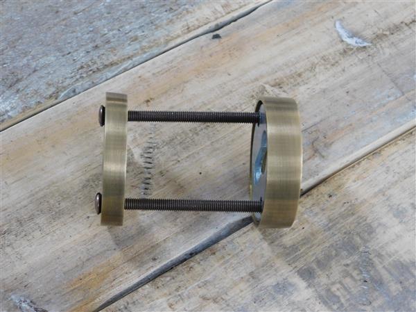 Die aus Messing patiniert gearbeitete Schloss-Rosette passt sehr gut zu vielen antiken Haustür Türbeschlägen. Auf einigen Bildern sehen Sie, wie das PZ-Schloss bündig eingefügt wird. Diese stabile Rosette als Sicherheitsrosette lässt sich nicht von außen abschrauben, da sie von der Rückseite her befestigt wird.