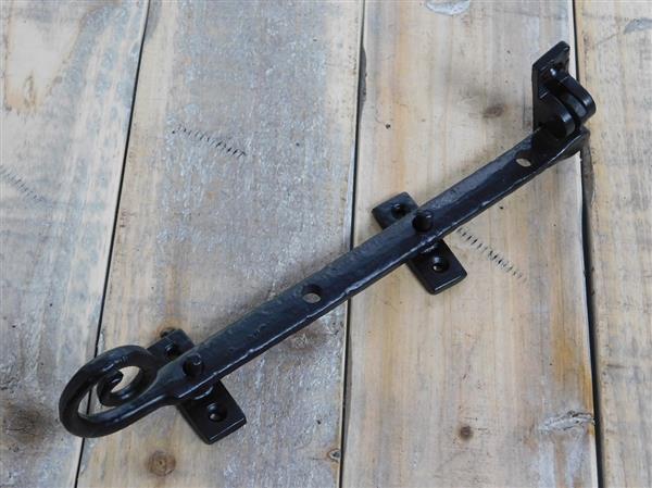 S luitwerk, raam uitzet, raamslot, windvanger raam, in antiek ijzer.