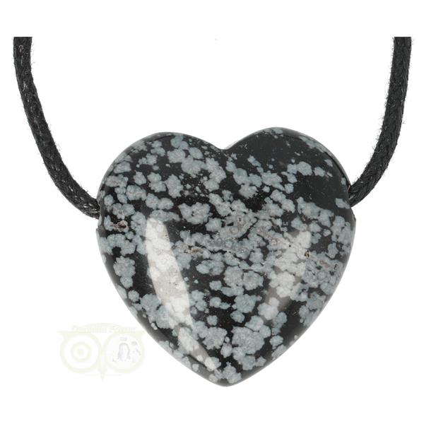 Sneeuwvlok Obsidiaan doorboorde hart hanger ± 3 cm Nr 16
