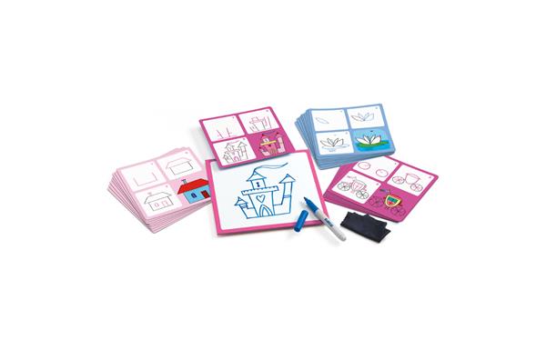 Leer prinsessen stap per stap tekenen. De opdrachtkaarten helpen je door elke fase. Een leuke activiteit om te leren tekenen. Veeg het whiteboard schoon en blijf oefenen!
