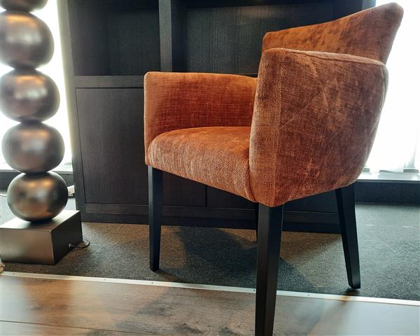 De stoel heeft een moderne en luxe uitstraling en door de ruime keuze in stoffen en kleuren kunt u de stoel gemakkelijk aan laten sluiten op alle verschillende interieurstijlen.