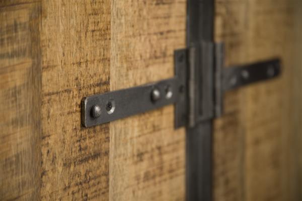 Tv meubel Basto 180 cm is een industriële tv meubel uit de collectie van Tower Living. Dit meubel is gemaakt van duurzaam mangohout en robuust staal. De combinatie van deze materialen geven het tv dressoir een sfeervolle en stoere uitstraling. De Basto woonserie is uniek door zijn gedetailleerde details, zoals de scharnieren met klinknagels en het ronde sluitwerk. De kast heeft twee deuren en één lade. Genoeg ruimte om alle spullen makkelijk in op te bergen. Ook is de tv kast voorzien van een open vak voor alle bijbehorende apparatuur. De poten zijn voorzien van kunststof doppen die krassen op uw vloer voorkomen.